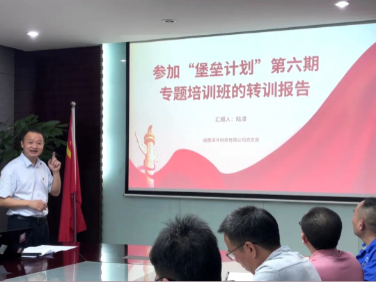 5月26日至5月30日,蜀道集團舉辦“堡壘計劃”第六期黨支部書記培訓班,蜀道裝備成都深冷科技公司黨支部書記、執行董事陸凌參訓。為充分轉化培訓成果,提升基層黨建工作水平,6月24日,成都深冷科技公司組織召開培訓成果分享會,公司全體領導班子成員、中層管理人員和全體黨員、積極分子參加會議。